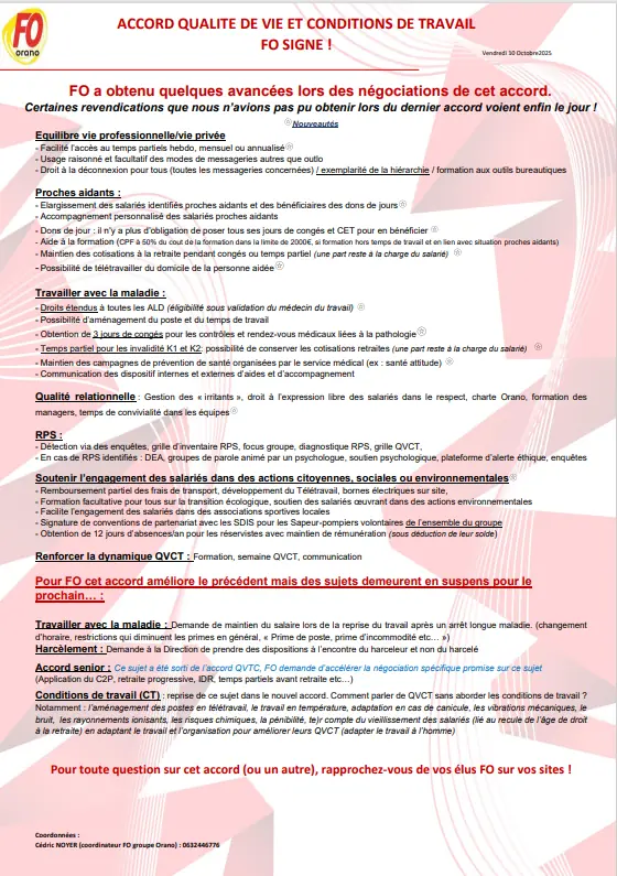 com FO sur la négo télétravail et l'intégration des salariés orano batteries aux accords de groupe