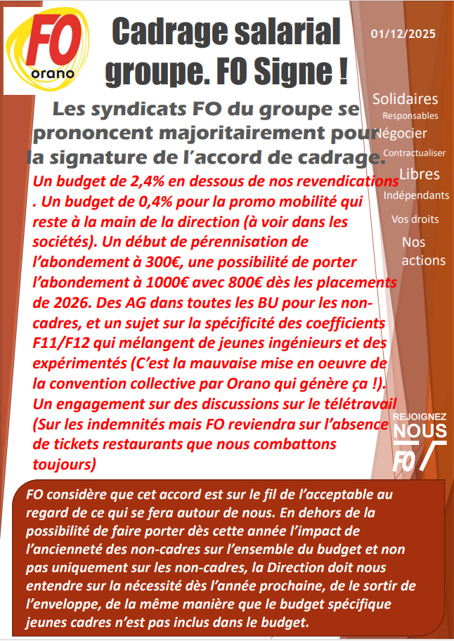 FIN DE NEGO CADRAGE SALARIAL GROUPE 2026: FO SIGNE!